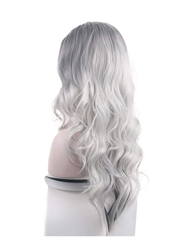 • Beautyself silver grey: beauty self silver grey costume wigs for women Christmas curly long wavy cosplay ombre fashion gray hair wigs with a wig cap